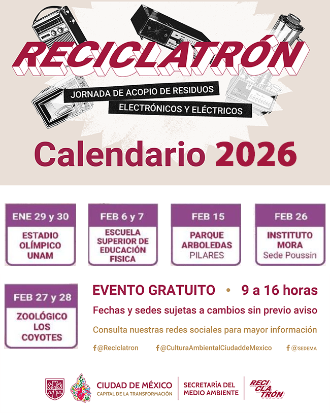 El Reciclatrón es un programa gratuito y se lleva a cabo preferentemente el último fin de semana de cada mes en un horario de 9 a 16 hrs. Revisa el calendario para este año en convocatorias.