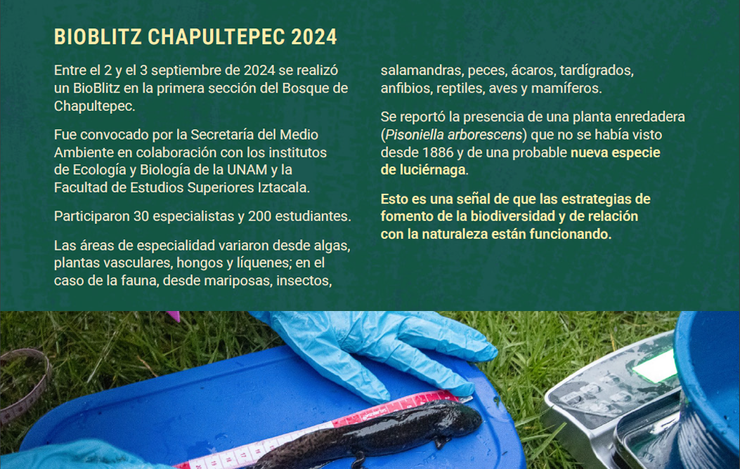 Entre el 2 y el 3 septiembre de 2024 se realizó un BioBlitz en la primera sección del Bosque de Chapultepec.