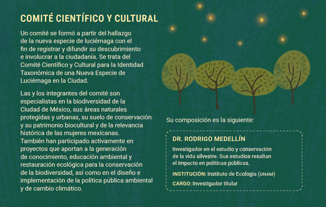 Un comité se formó a partir del hallazgo de la nueva especie de luciérnaga con el fin de registrar y difundir su descubrimiento e involucrar a la ciudadanía. Se trata del Comité Científico y Cultural para la Identidad Taxonómica de una Nueva Especie de Luciérnaga en la Ciudad.